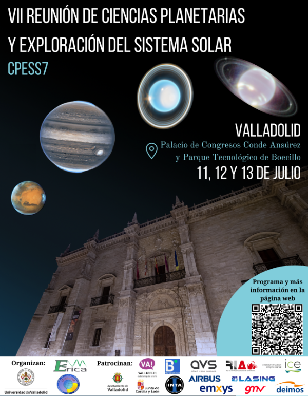 La 7º reunión CPESS ("Ciencias Planetarias y Exploración del Sistema Solar") se llevará a cabo en Valladolid, España, del 11 al 13 de julio de 2023. Está organizado por el grupo de Investigación ERICA del departamento de Física Aplicada de la Universidad de Valladolid (UVa), con la colaboración de otros grupos e investigadores del campo de la Astrofísica de la UVa.